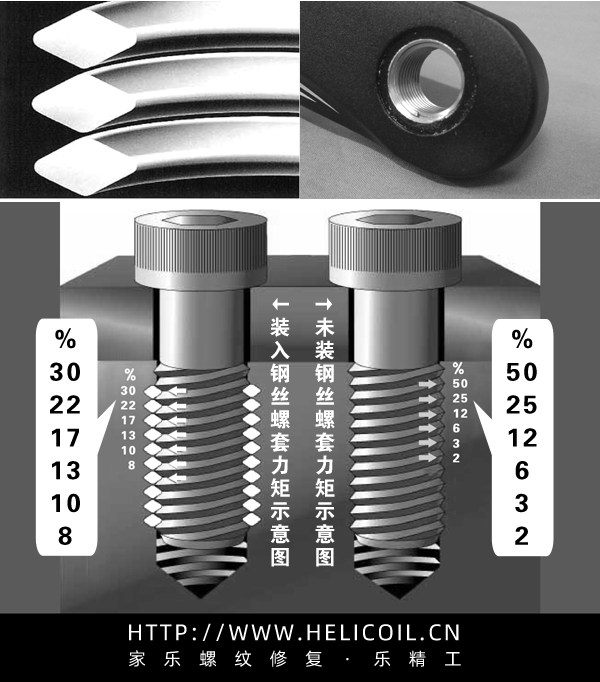这种通过不锈钢丝套修复内螺纹滑丝的方法最早起源于美国、德国,主要是解决航空航天器上大量使用的轻合金内螺纹强度不足的问题,后为我国军方所借鉴,广泛应用于军品上,后逐渐普及到民用。至今为止,此维修方法依然在军方、飞机维修行业及各种高端制造业所采用,其可靠性不言而喻!